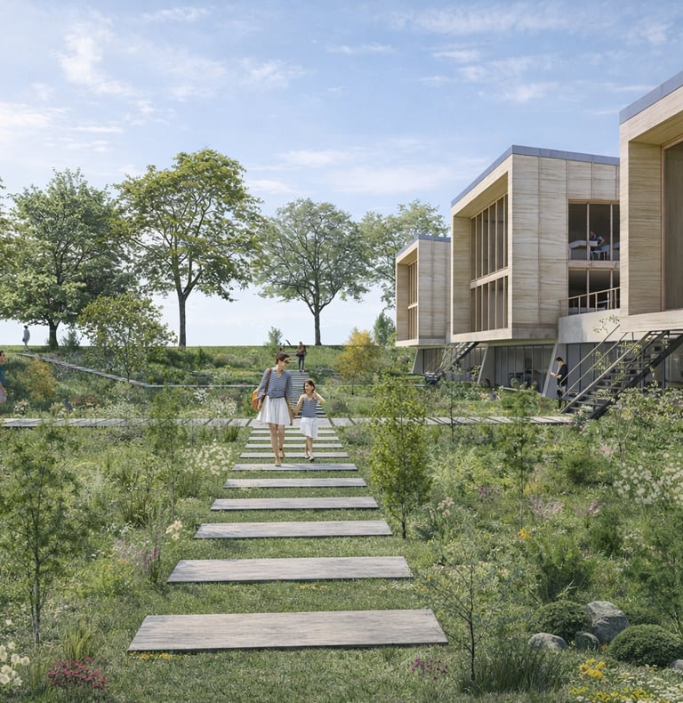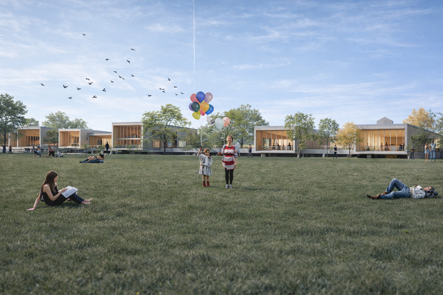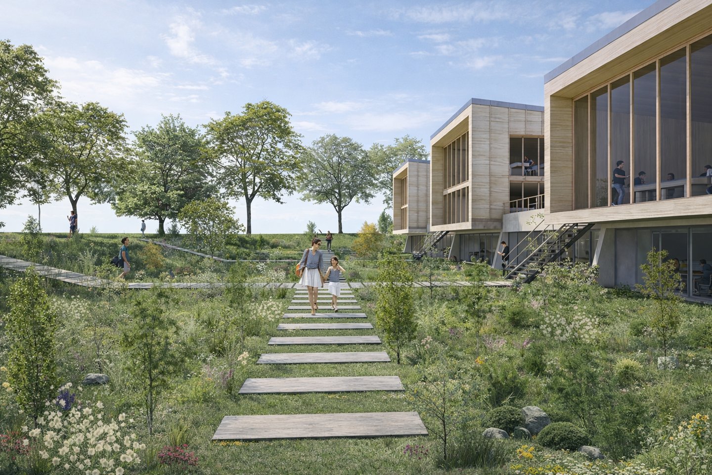 Ces grands espaces publics extérieurs, ouverts à tous, accueillent également un skatepark, un parc pour enfants et un terrain multi-sports, garantissant la pérennité des usages du site.