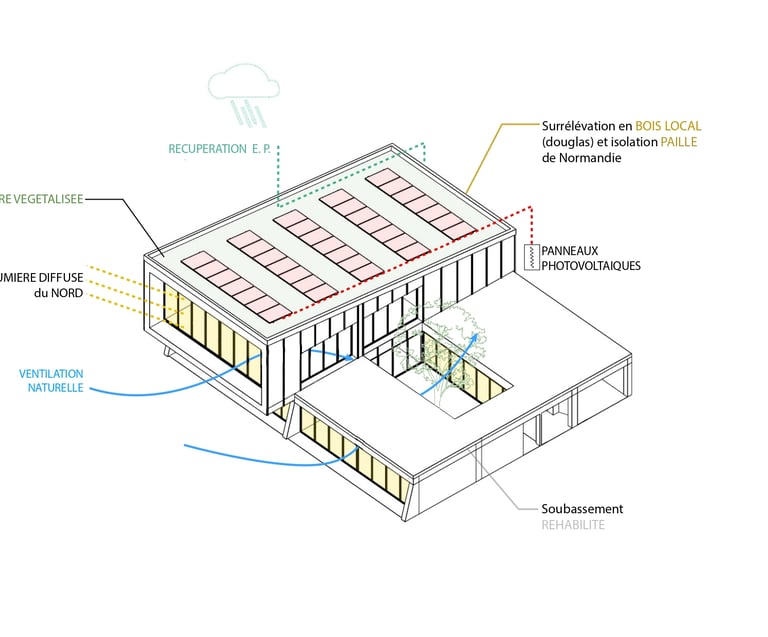 Le projet propose ainsi de requalifier le foncier public du front de mer afin de reconnecter la ville à son littoral et d’introduire la biodiversité au cœur d’un tissu urbain aujourd’hui très minéral. En revitalisant son centre, Cherbourg pourrait limiter son étalement urbain et la construction neuve, tout en favorisant la réhabilitation de son patrimoine bâti existant.