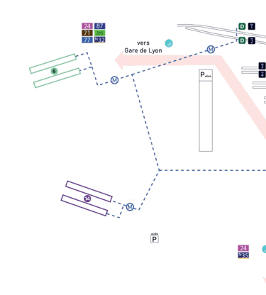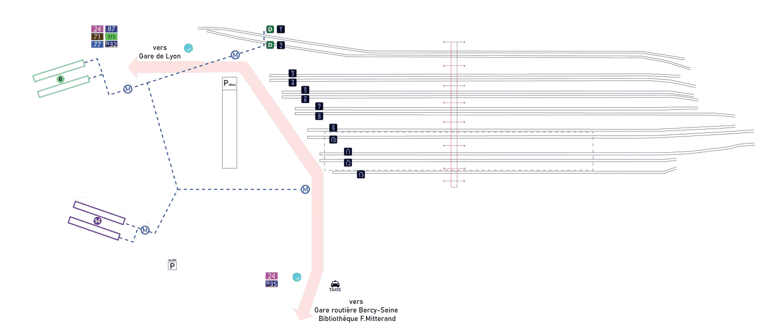 Ces différentes gares peuvent être aussi reliées à l’aide de continuités pédestres et végétales faisant de la gare de Bercy la plaque tournante de ce nouveau système.
