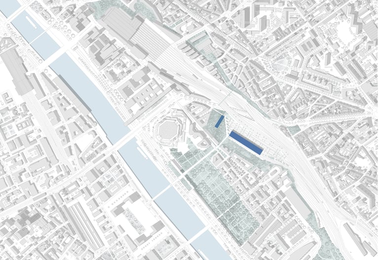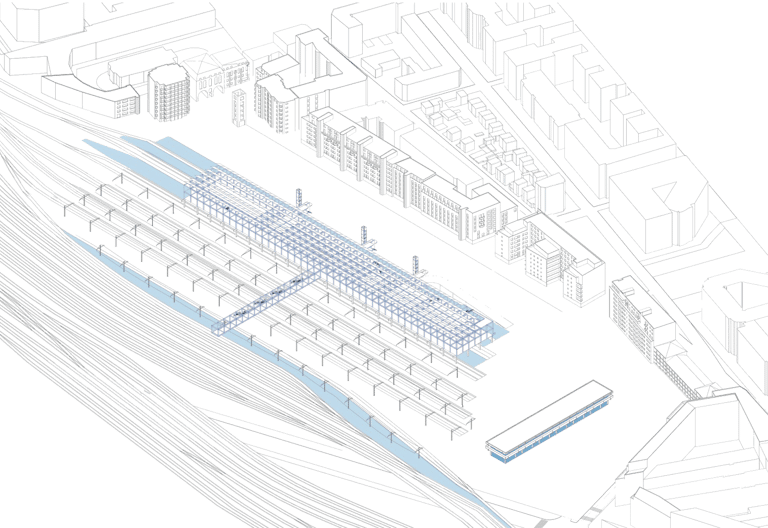 Nous proposons, par conséquent, de réaliser un grand projet paysagé, urbain et architectural afin de faire de la gare de Bercy la 7ème grande gare parisienne. Insérer la gare de Bercy dans un système multimodal comprenant la gare ferroviaire d’Austerlitz, de Lyon et la gare routière de Bercy-Seine est indispensable à son développement. De plus, l’arrivée du RER D à Bercy permettra à la gare d’être reliée au bipôle NORD-EST comprenant la gare du Nord et de l’Est.